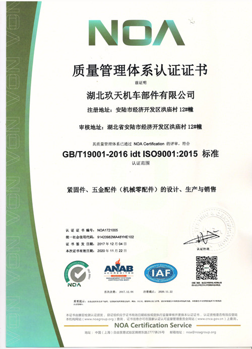 On November 12, 2019, the assessment team from the Wuhan Assessment Center arrived at our company to conduct an assessment on the operation of our quality management system. All departments in our company actively cooperated. After a day of intense review, it was confirmed that our ISO9000 quality system was operating normally and all aspects were well controlled. The assessment team unanimously praised our company and we successfully passed the annual assessment. On December 16, 2019, we received our new certificate.
