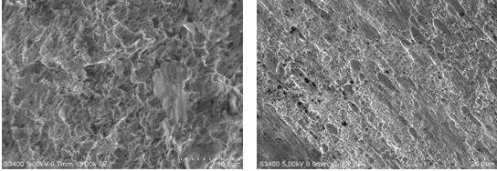 断裂件的整个断口形貌均为韧性延展断裂,且断口韧窝具有明显的方向性,为扭转断裂特征。