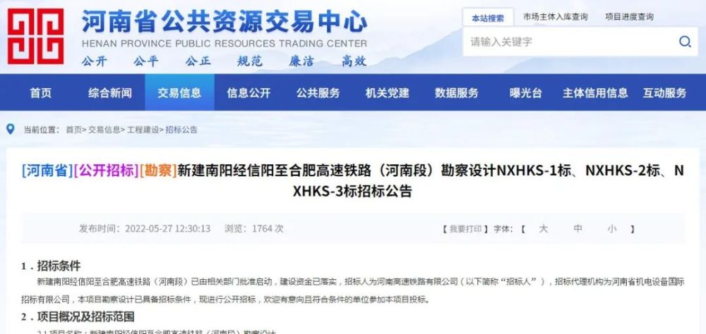 5月27日,河南省公共资源交易公共服务平台发布新建南阳经信阳至合肥高速铁路(河南段)勘察设计招标公告,南信合高铁建设正式提上日程。届时,豫南更多城市将实现高铁梦,桐柏山-大别山革命老区将焕发经济活力。