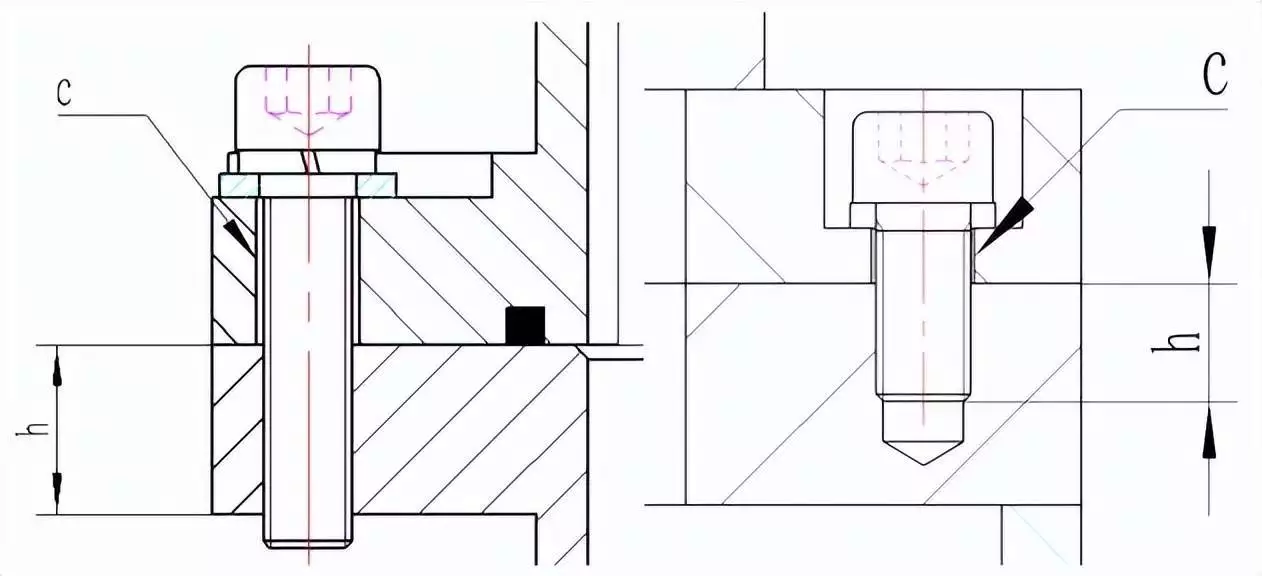----特殊紧固件孔允许螺纹啮合的螺纹深度h,应至少等于紧固件螺纹的外径。